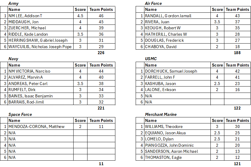Games played 11-13 Oct 2025 at the U.S. Merchant Marine Academy